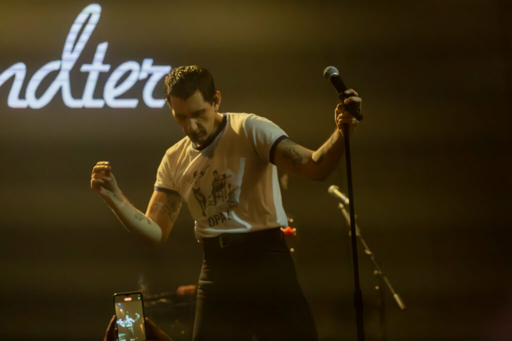 Studio Theater se volvió una ciudad paralela. Una ciudad donde los cuerpos se movían sin pedir permiso, donde las miradas cómplices tejían redes invisibles de afecto. Anwandter apareció como narrador de lo nocturno y lo bailable. Algunas de las canciones que sonaron fueron “Tormenta”, “Locura” y “Siempre es viernes en mi corazón”. Pero no fue solo música: fue una dramaturgia del deseo. Cada canción funcionó como escena de una obra mayor, donde el protagonista no era él, sino el público que se reconocía en sus letras.
