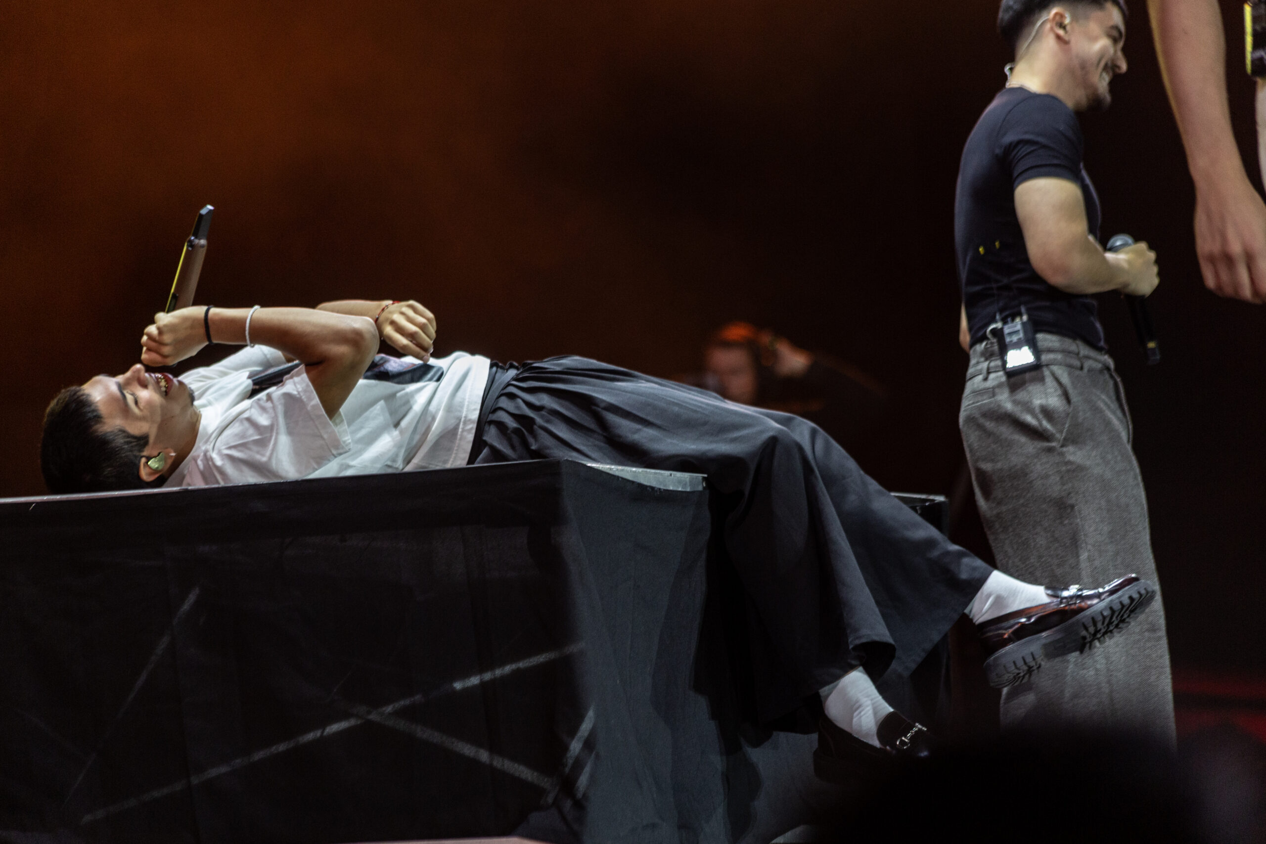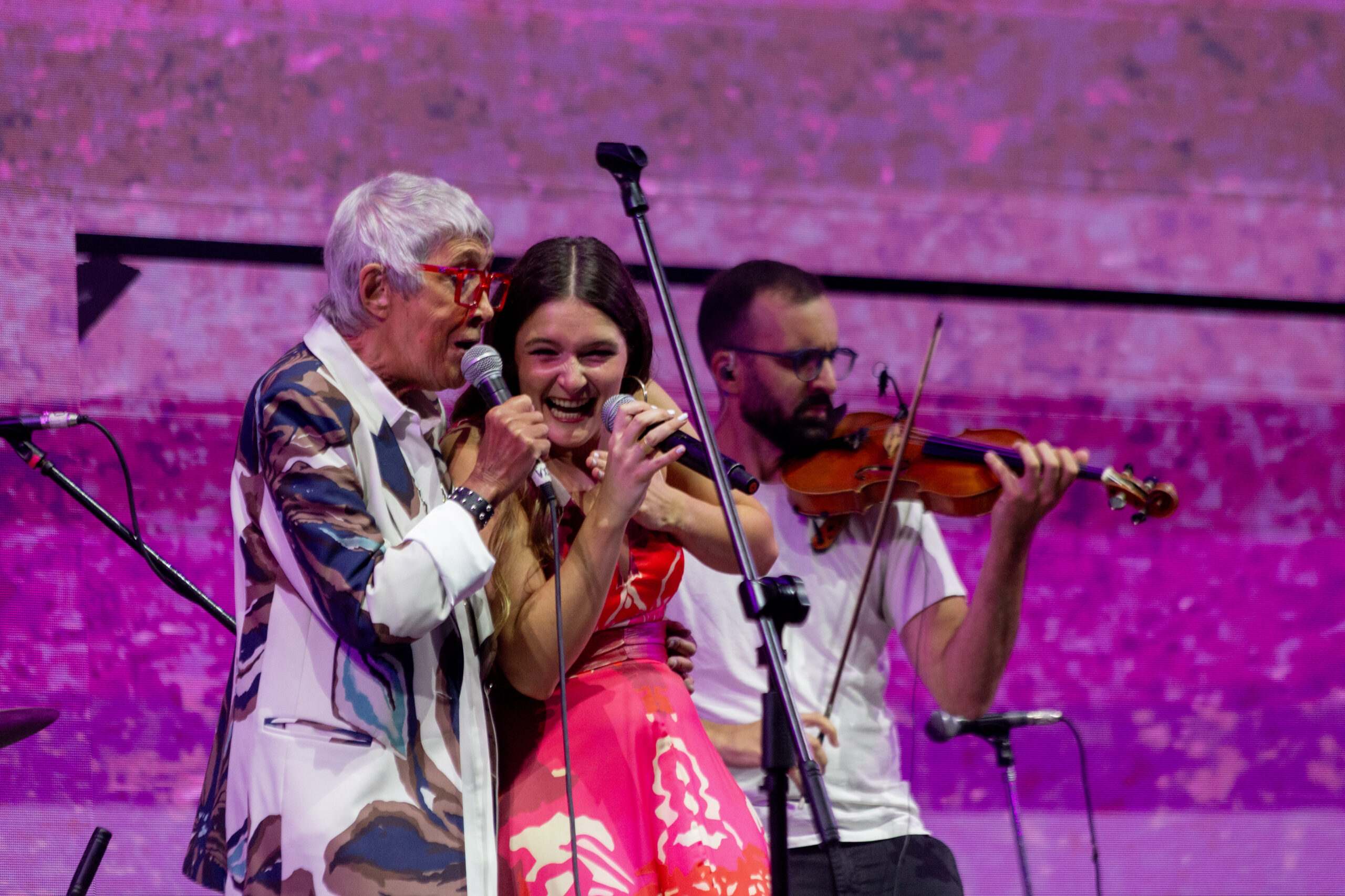 La noche siguió con Gauchos of the Pampa, el homenaje a los Hermanos Abalos, y la presentación de Campedrinos, flamantes ganadores de la Consagración y próximos a debutar en Viña del Mar. Más tarde, ya entrada la madrugada, Cuti y Roberto Carabajal regresaron al festival con banda completa y fueron ovacionados de pie. La sonrisa no se les borró ni un segundo, menos aún cuando Cuti recibió el premio Camin a la trayectoria. Volvieron al escenario una vez más, invitados por Milo J para cantar Invisible, una canción compuesta entre los tres. También pasaron la murga Agarrate Catalina, Soledad Pastorutti —que abrazó a Milo como si fuera un hijo—, Radamel, Sergio Prada y Agustín Fantili, completando un mosaico donde la familia del folklore se mostró en toda su amplitud.