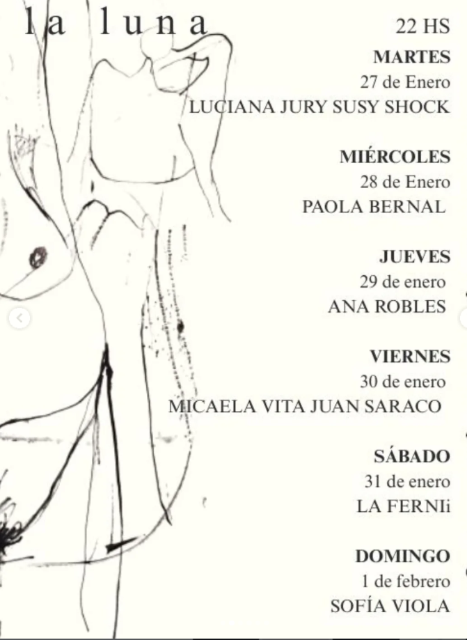 La música aparece como un pulso nocturno que atraviesa toda la programación. A partir del 23 de enero, la casa recibe a artistas que trabajan la canción desde la raíz, la experimentación y la cercanía. Las noches se van hilando con la presencia de CCI Kiu, Ramiro González, Manu Estrada, Luciana Jury junto a Susy Shock, Paola Bernal acompañada por Pampi Torres y Joel Acosta, Ana Robles, Micaela Vita y Juan Saraco, La Ferni y Chacho Marzetti, hasta cerrar el ciclo con Sofía Viola el 1 de febrero. Cada presentación está pensado como un ritual íntimo donde cada concierto se vuelve un acto compartido.