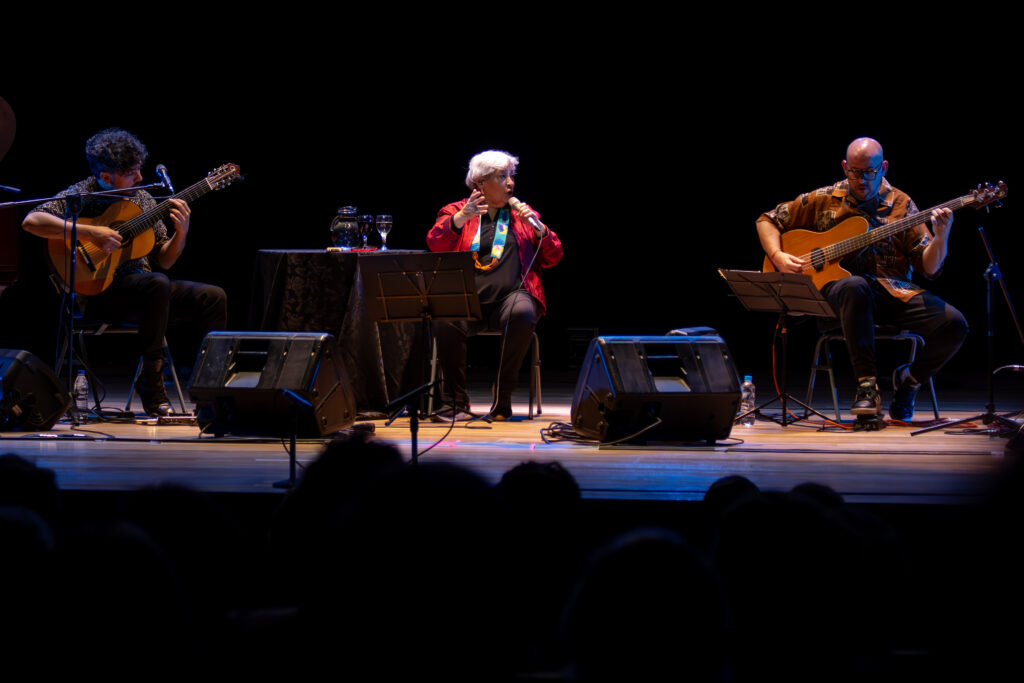 La noche del viernes, el Teatro Comedia de Córdoba recibió a Liliana Herrero, quien abrió el concierto agradeciendo la posibilidad de cantar por primera vez en esa sala histórica. Señaló que lo valioso no es solo haber restaurado el teatro, sino haber dejado sus paredes como huellas de lo que sucedió, porque —como expresó a grandes rasgos— para saber hacia dónde vamos, es necesario recordar de dónde venimos y qué pasó. Ese gesto inicial marcó el tono de una velada atravesada por la memoria, la música y la comunidad.