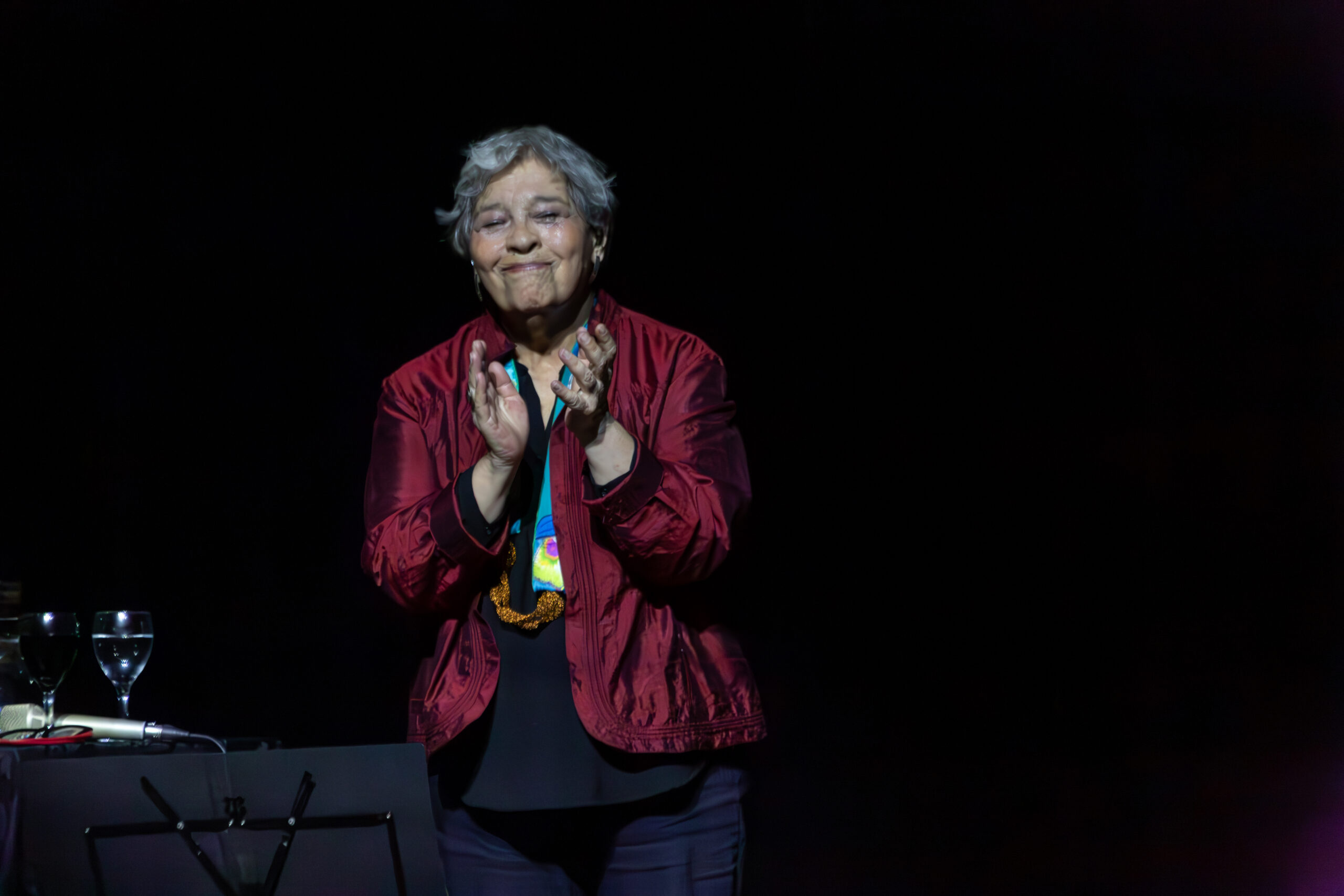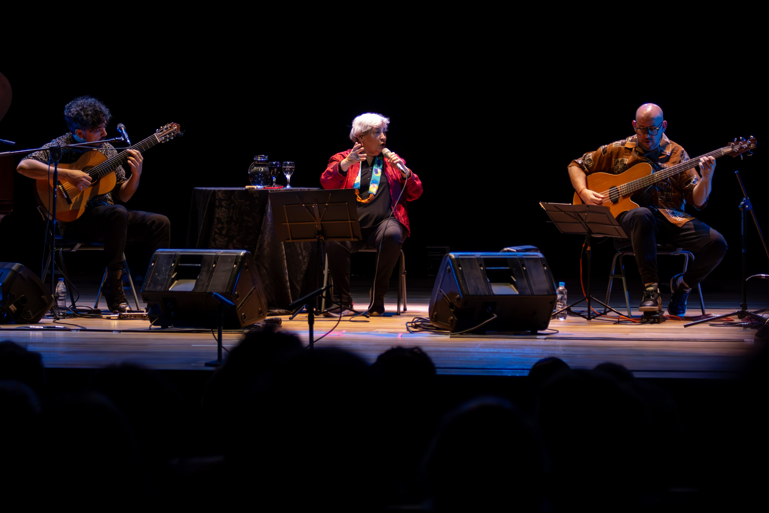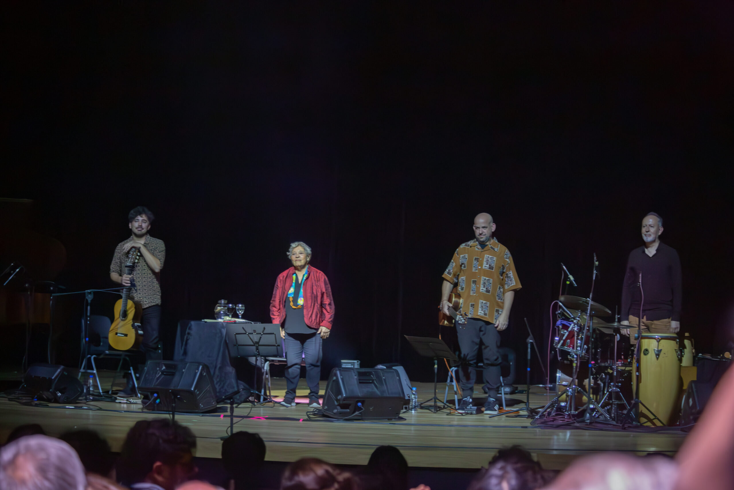 En la segunda parte, la atmósfera se volvió festiva. Herrero repasó clásicos de su repertorio como las infaltables Oración del remanso, El tiempo está después, Abc y Golondrinas, entre otras. La dinámica fue de tertulia: la intérprete se corrió del centro de la escena para dejar que la música y la palabra circularan entre todos. Hubo momentos en que Pedro Rossi tomó la voz, y otros en que Ariel, Facundo y Mariano demostraron que los instrumentos también pueden narrar una historia sin necesidad de estar acompañados por palabras. Entre silencios y aplausos, se hizo evidente otra de las convicciones de Herrero: que callar también es hacer política, y que el silencio nunca es neutral, sino parte de una dramaturgia que puede ser tan potente como la palabra. Liliana dejó en claro cuál es su postura y qué significa la cultura para ella, eligiendo un puñado de canciones de ese extenso repertorio que conforma la música popular latinoamericano.