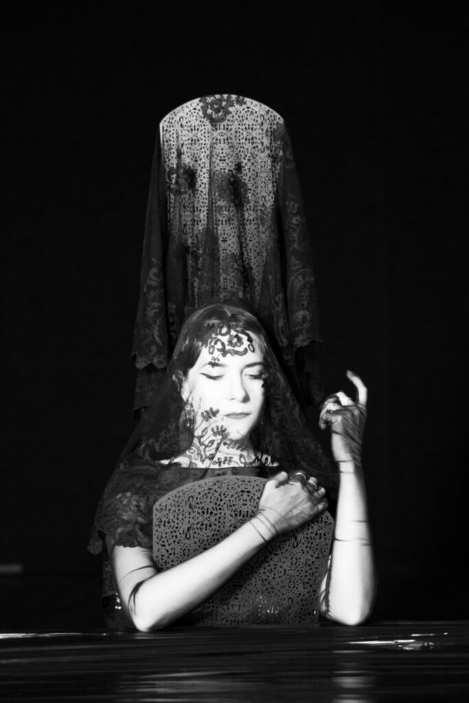 Rocío Márquez: Mi posicionamiento artístico no resuena con la literalidad, quizás porque soy una enamorada del lenguaje poético. Creo que podemos llegar de manera más directa, transmitir toda la potencia de un mensaje, desde un posicionamiento simbólico o alegórico, que se apoya en imágenes. Desde aquí podemos evocar como artistas mundos mucho más amplios en el público de lo que haríamos de manera directa. Al mismo tiempo, creo que la voz sí es directa, honesta en su expresión emocional. Entonces me apoyo en este lenguaje poético para transmitir el duelo que he vivido mientras permito a mi voz expresar el grito, el quiebre, la rotura de toda mi vivencia.